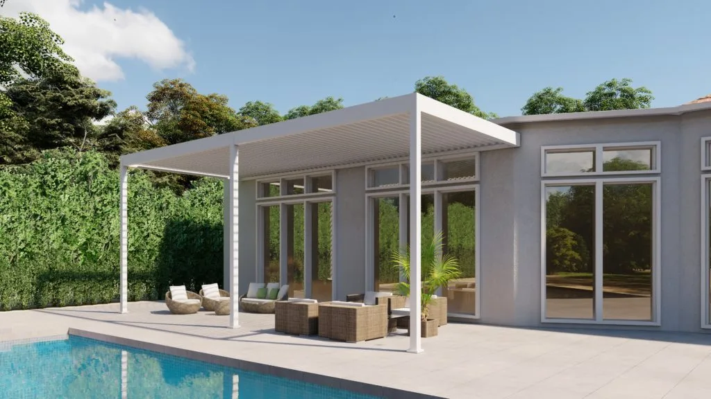 Putting in an outdoor kitchen? Why leave it out in the elements? You can have your extended living space the way you want it. Close the roof louvers (a remote control feature!) on your pergola when you’re done with preparing a meal.